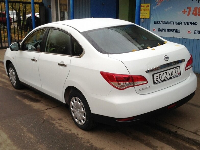 Московская прокатная компания «АрендаАвто-злт» предлагает взять в аренду Nissan Almera IV MT белого цвета с механической коробкой передач по низкой цене.